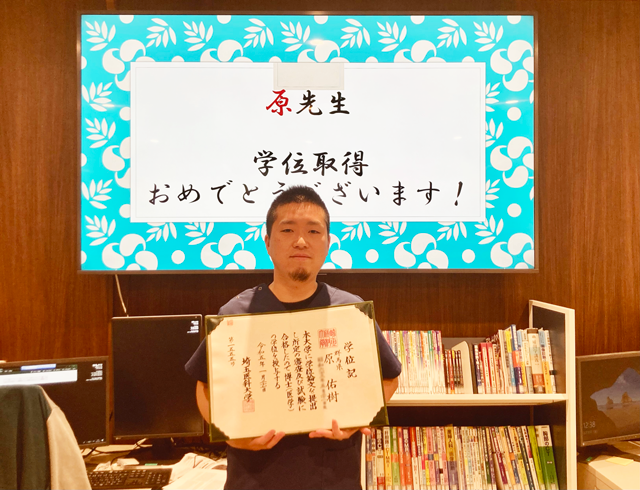 土橋先生 「先生方のご指導のおかげで無事合格できました。ありがとうございます。」